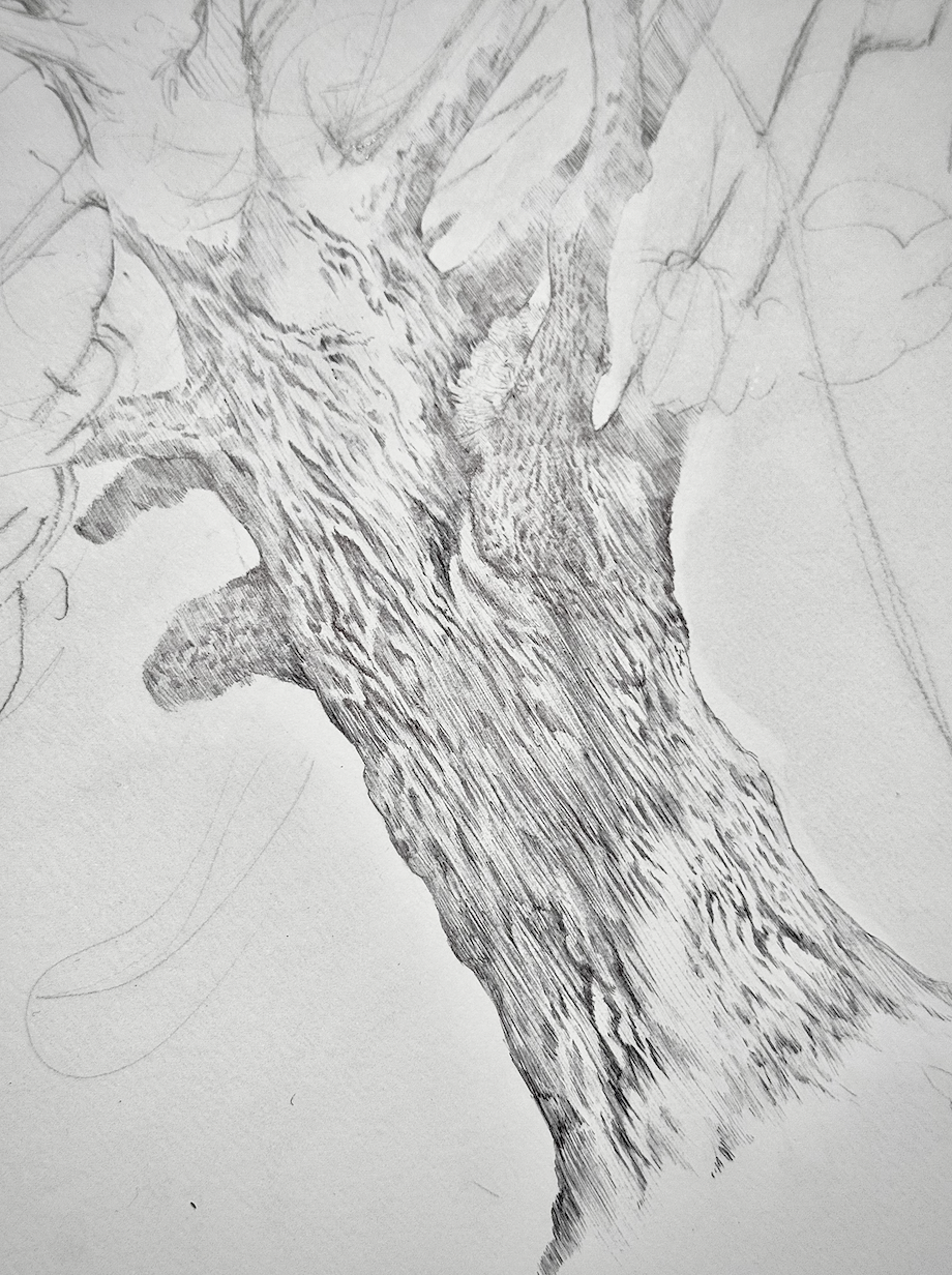 For this collection, I traveled across California by van, creating plein-air drawings of the state’s largest Champion Trees featured in California Trees: A Field Guide to the Native Species by Matt Ritter and Jeffery B. Pine.